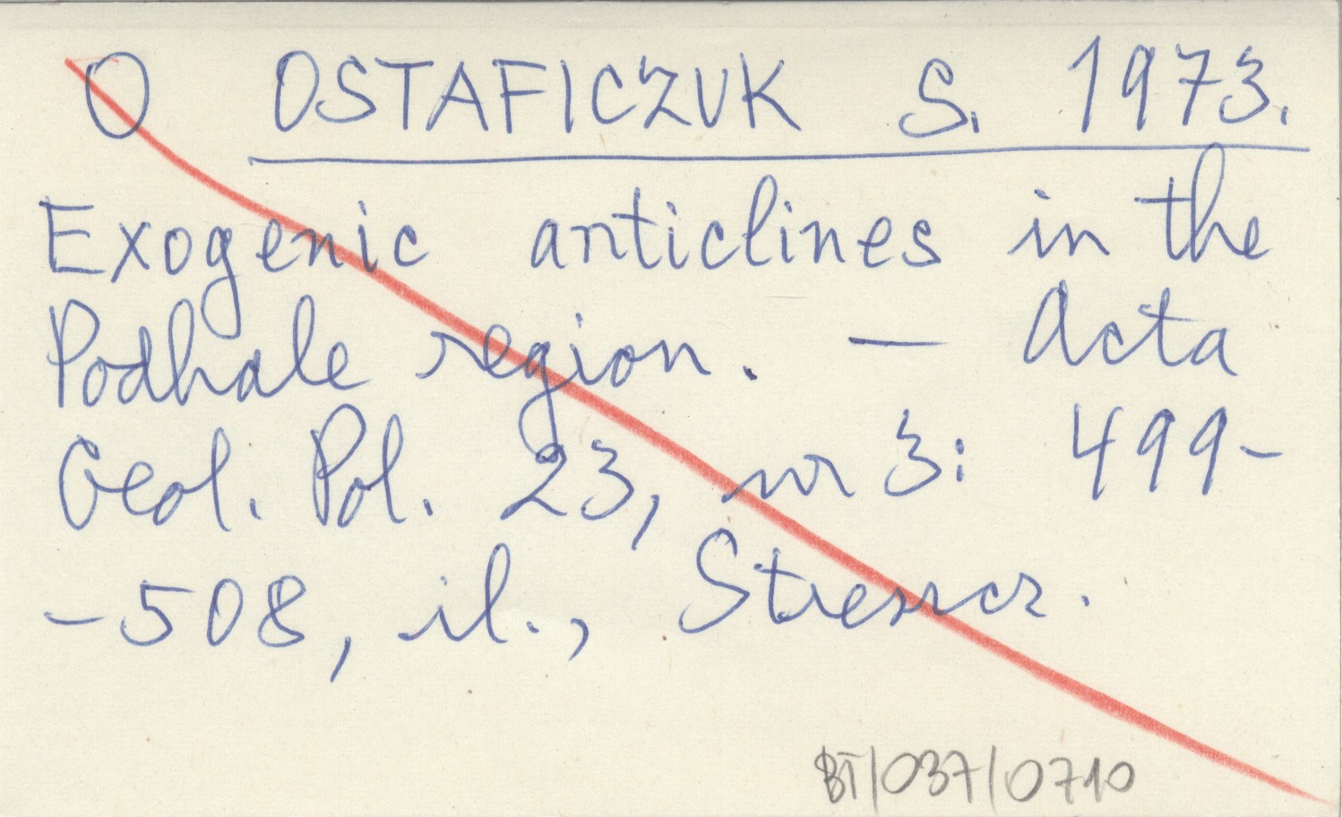 OSTAFICZUK S. 1973 Exogenic anticlines in the Podhale region.