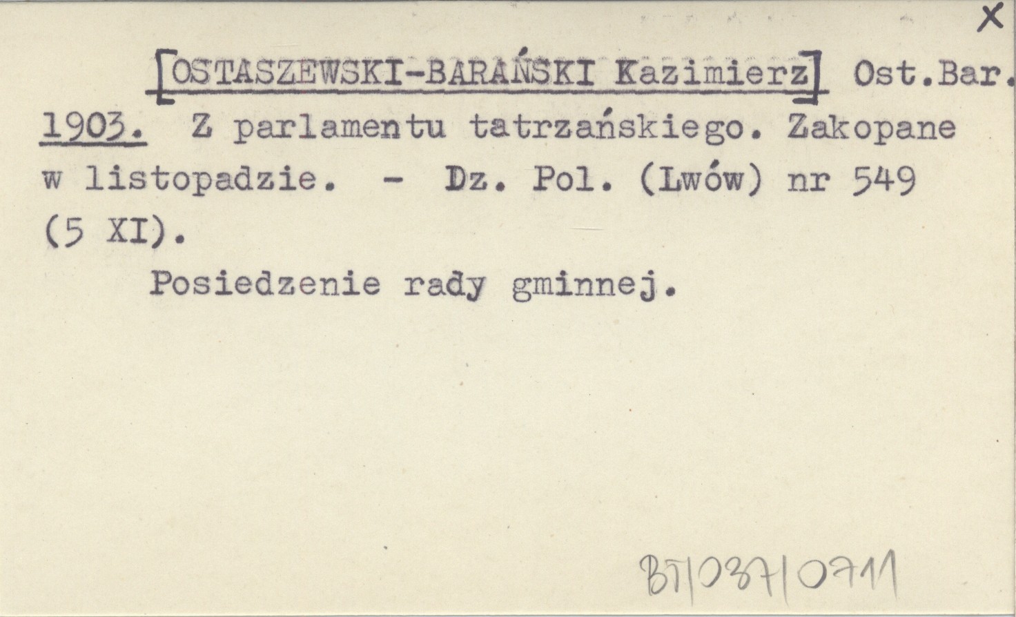 Ost. Bar. [OSTASZEWSKI-BARAŃSKI Kazimierz] 1903 Z parlamentu tatrzańskiego. Zakopane w listopadzie.