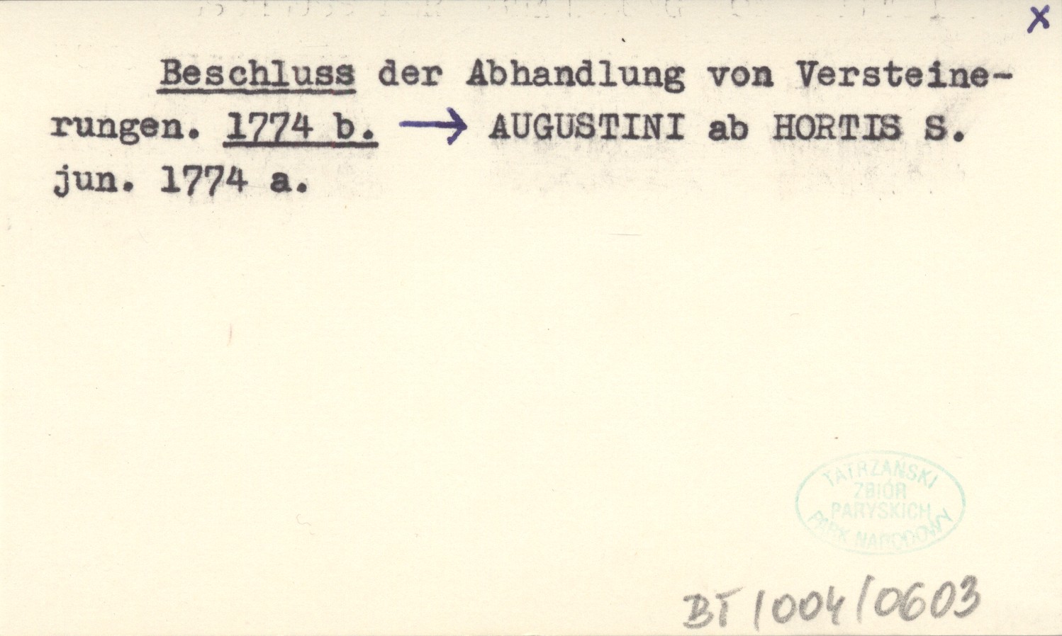 AUGUSTINI ab HORTIS S. jun. 1774 a