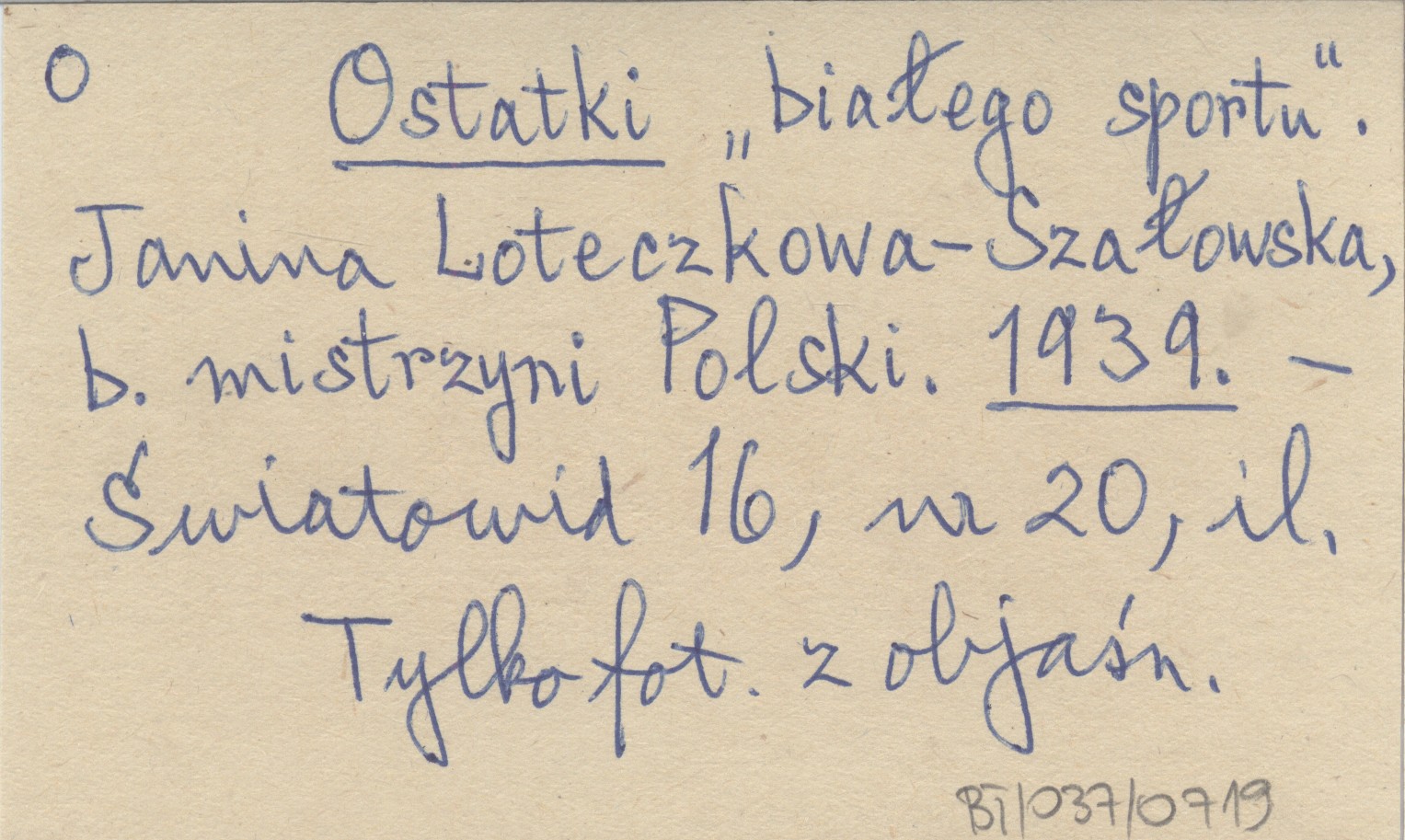 Ostatki "białego sportu". Janina Loteczkowa-Szałowska, b. mistrzyni Polski. 1939