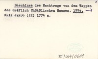 Beschluss des Nachtrags von dem Wappen des Gräflich Thökölischen Hauses. 1774
