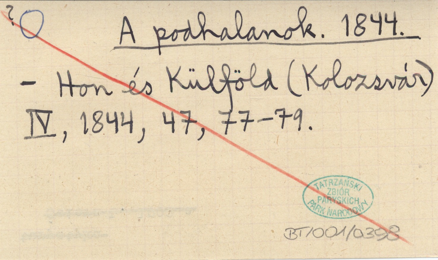 Hon és Külföld (Kolozsvár) , IV, 1844, 47: 77-79.