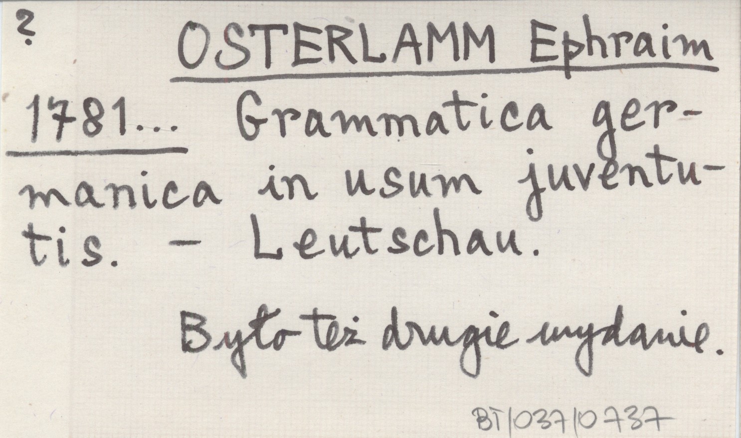 OSTERLAMM Ephraim 1781... Grammatica germanica in usum juventutis.