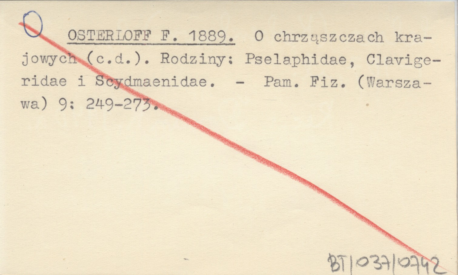 O chrząszczach krajowych (c.d.). Rodziny: Pselaphidae, Clavigeridae i Scydmaenidae.