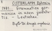 OSTERLAMM Ephraim 1781... Grammatica germanica in usum juventutis.