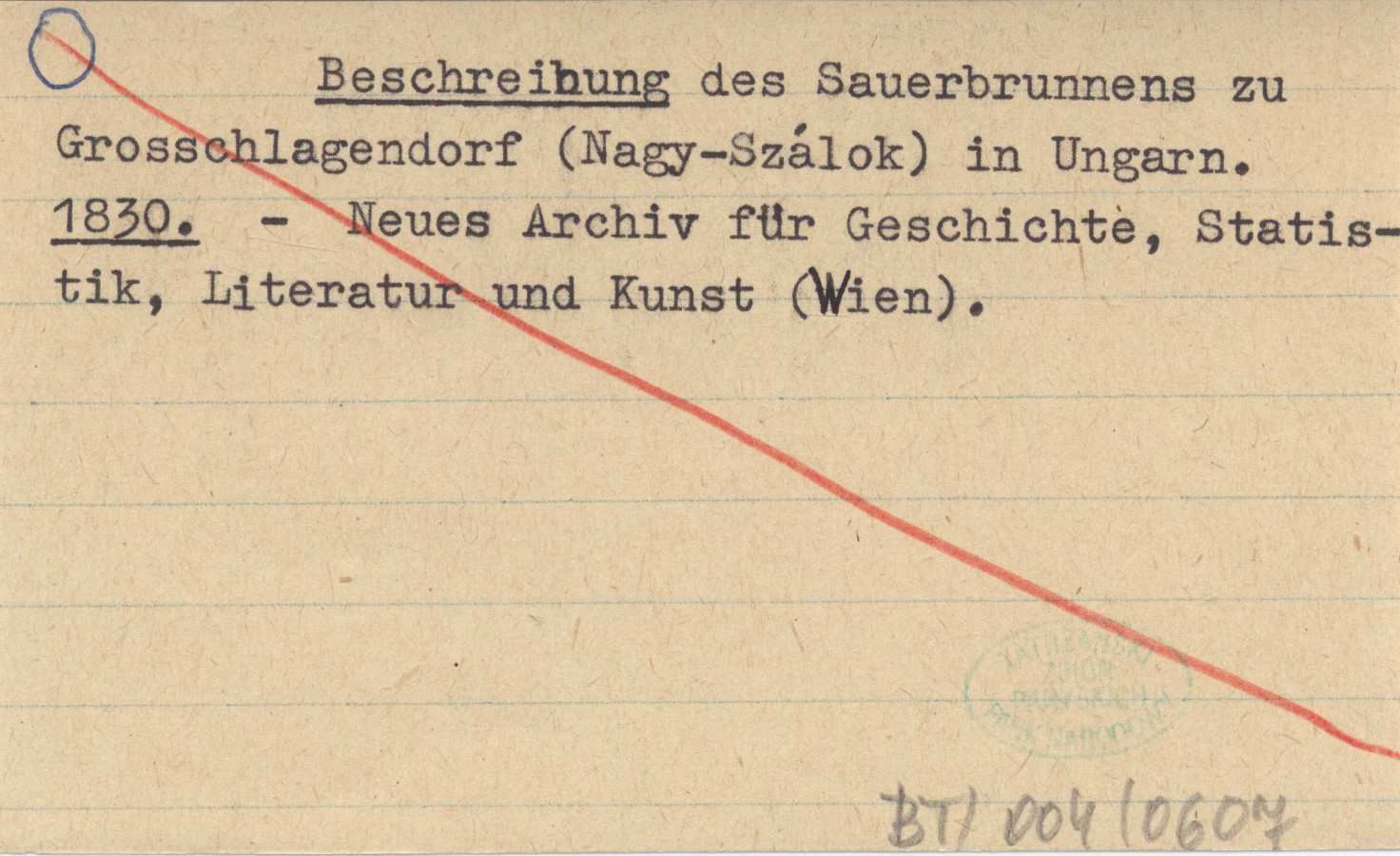 Beschreibung des Sauerbrunnens zu Grosschlagendorf (Nagy-Szálok) in Ungarn. 1830