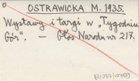 OSTRAWICKA M. 1935 Wystawy i targi w "Tygodniu Gór".