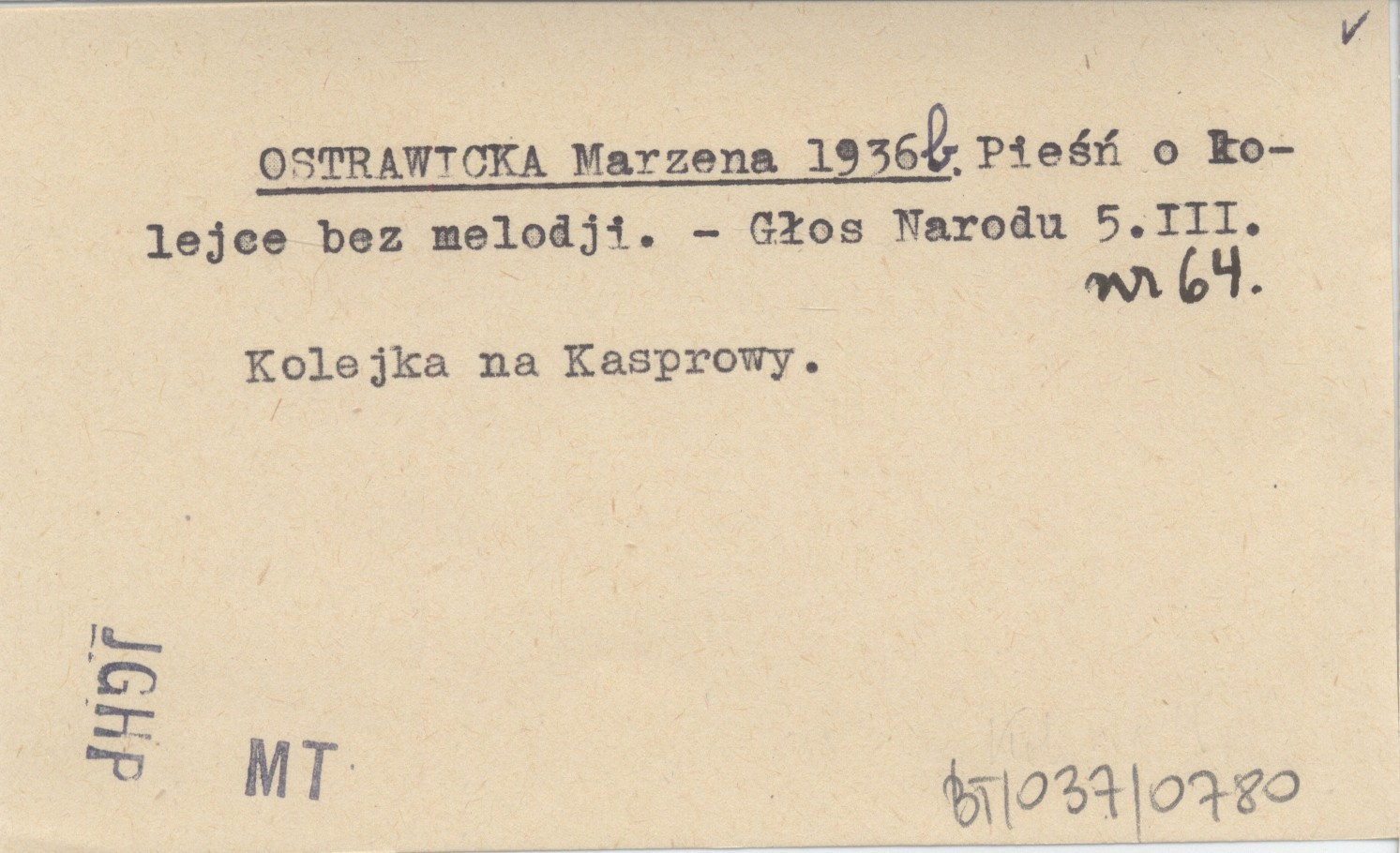 OSTRAWICKA Marzena 1936 b Pieśń o kolejce bez melodji.