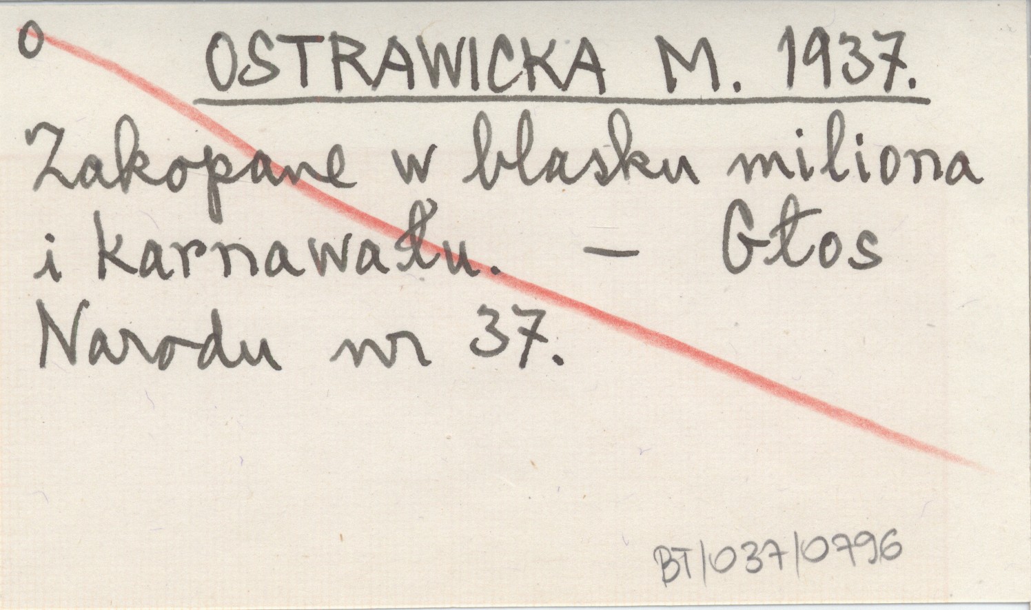 OSTRAWICKA M. 1937 Zakopane w blasku miliona i karnawału.