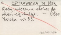 OSTRAWICKA M. 1937 Kiedy wiosenne słońce do okien się śmieje.