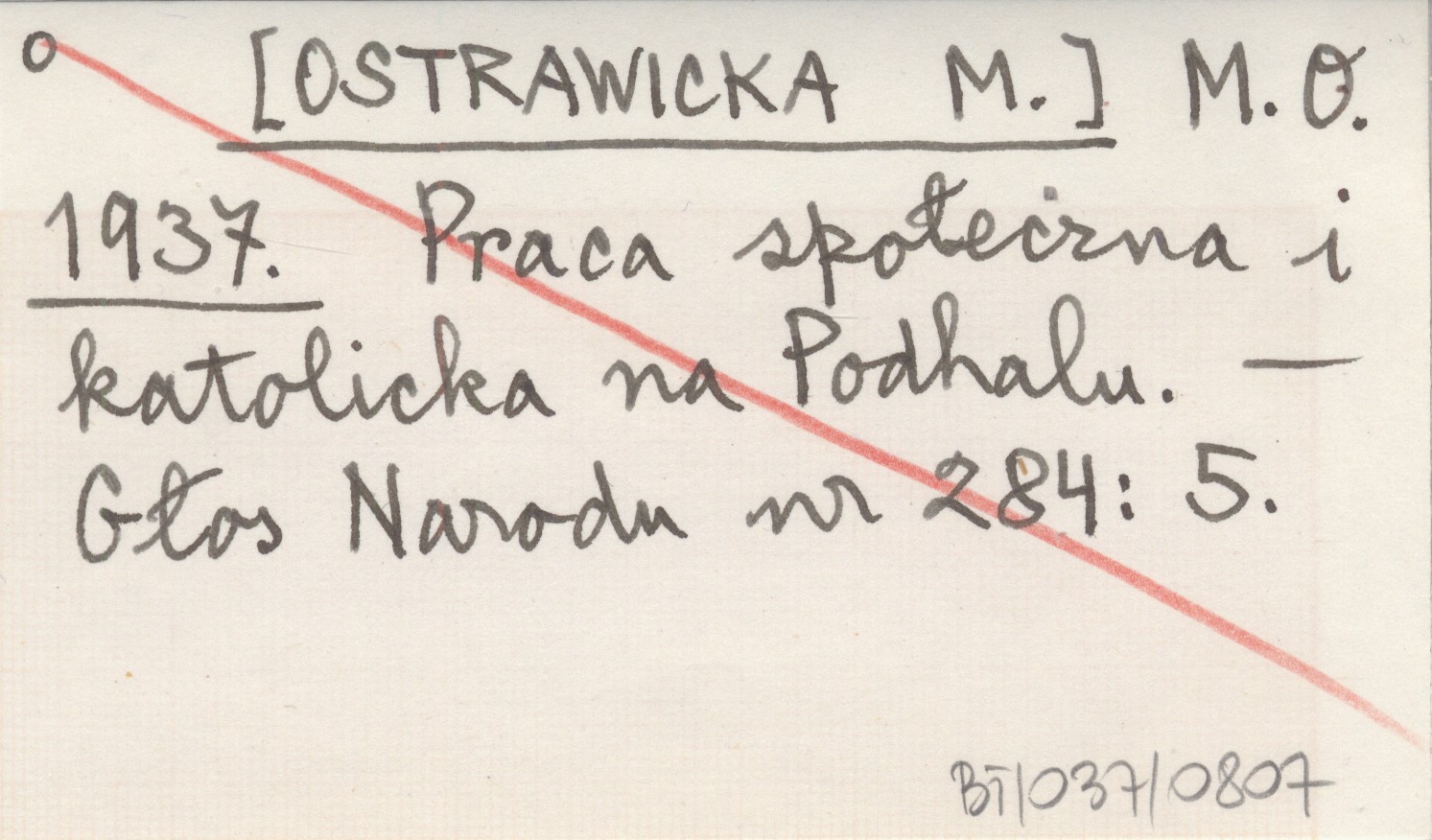 M. O. [OSTRAWICKA M.] 1937 Praca społeczna i katolicka na Podhalu.