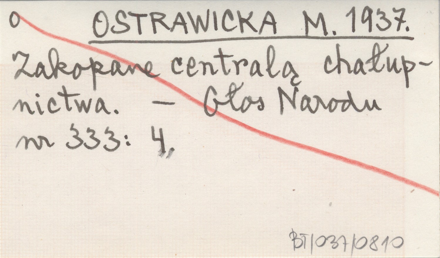 OSTRAWICKA M. 1937 Zakopane centralą chałupnictwa.