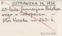 OSTRAWICKA M. 1937 25-lecie Gimnazjum Państwowego w Zakopanem.
