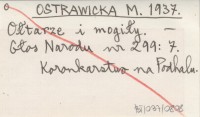 OSTRAWICKA M. 1937 Ołtarze i mogiły.