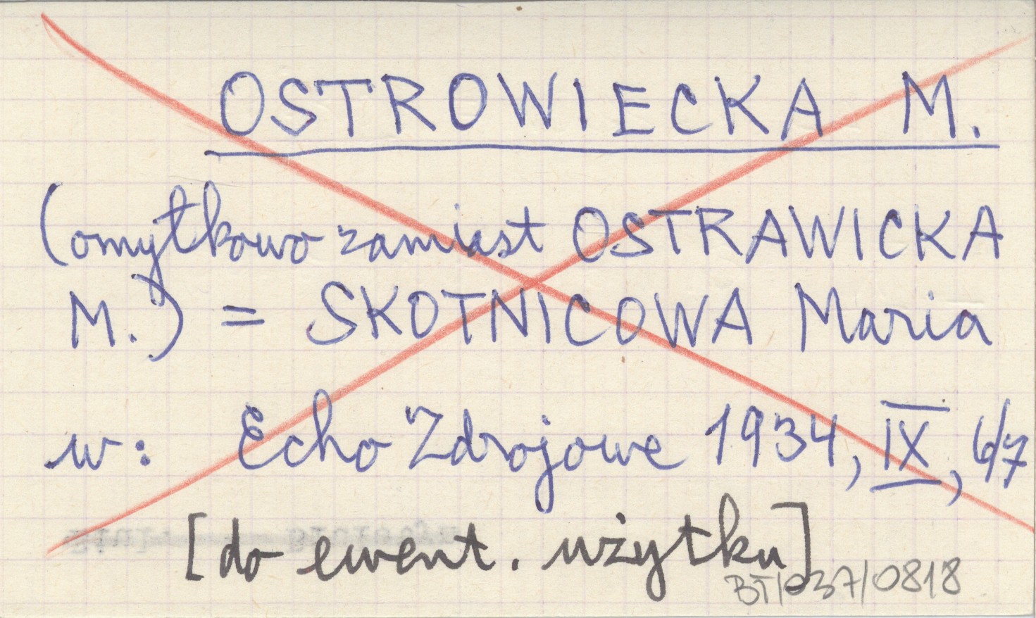 OSTROWIECKA M. (omyłkowo zamiast OSTRAWICKA M.) SKOTNICOWA Maria
