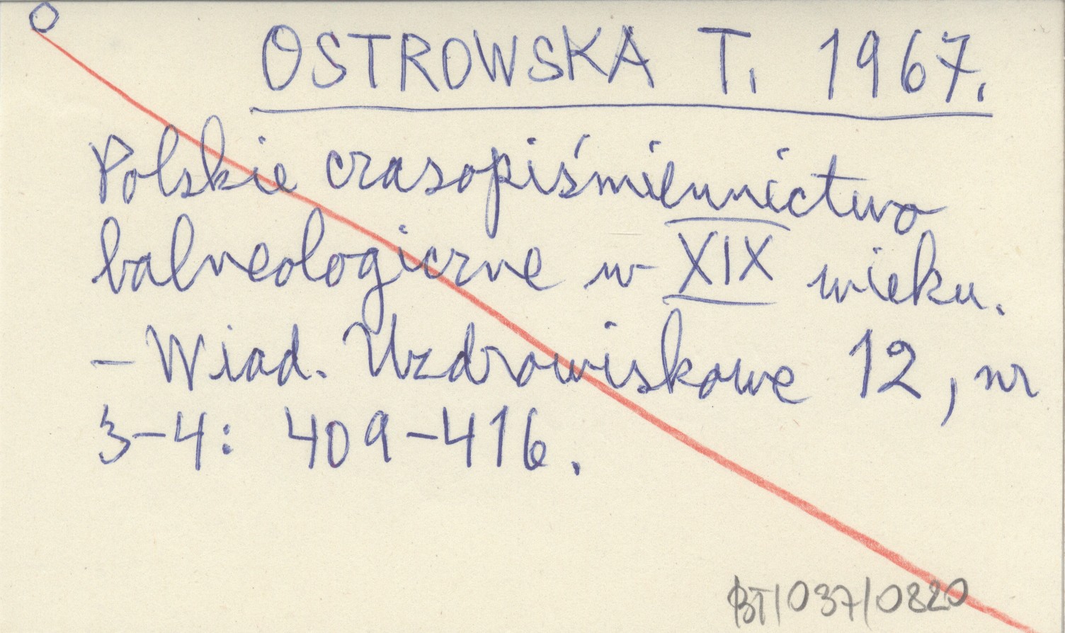OSTROWSKA T. 1967 Polskie czasopiśmiennictwo balneologiczne w XIX wieku.