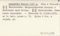 OSTROWSKI Wiktor 1937 a Zima w Tatrach: [1.} Narciarstwo. Mięguszowieckie Szczyty i Miedziane spod Holicy. [2.] Taternictwo. Towarzysz odpoczywa.