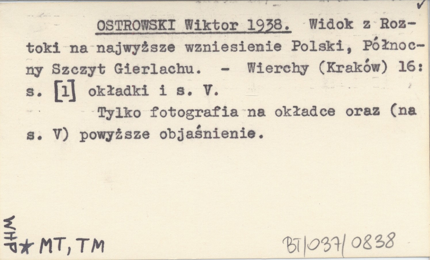 Wierchy (Kraków) , 16: [1] (okł), V. Tylko fotografia na okładce oraz (na s. V) powyższe objaśnienie.