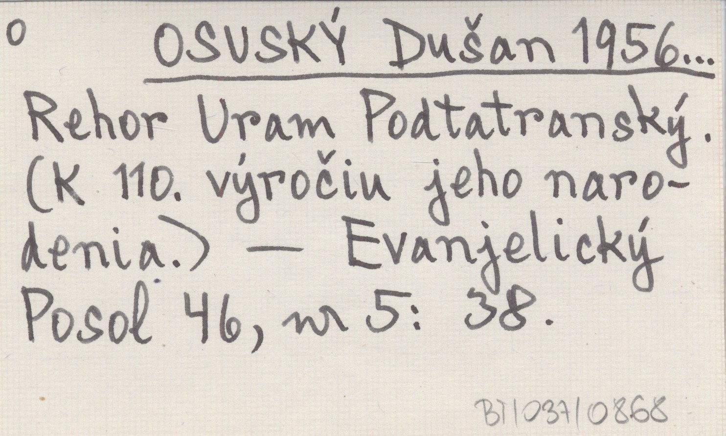 Rehor Uram Podtatranskę. (K 110. vęroèiu jeho narodenia).