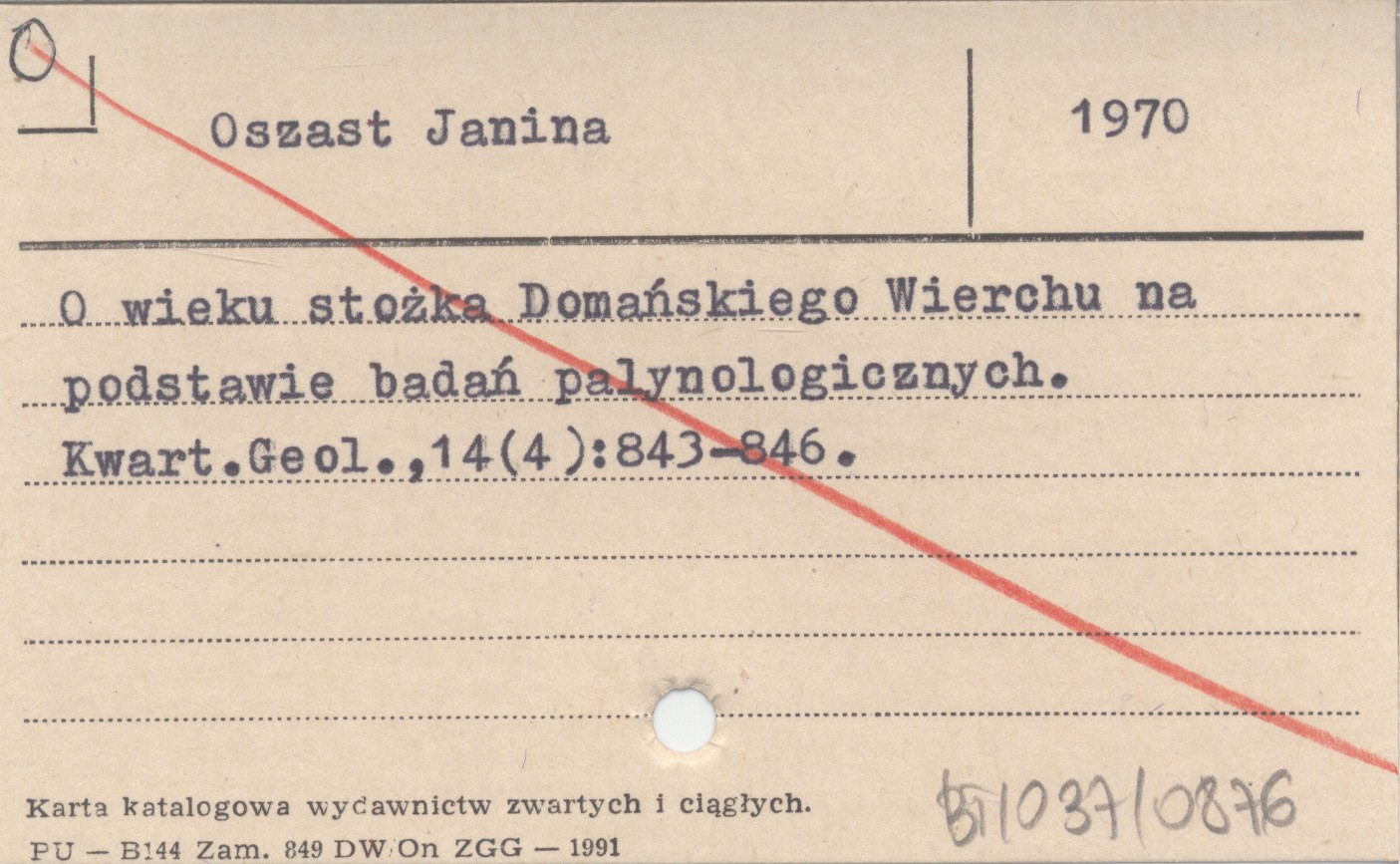 OSZAST Janina 1970 O wieku stożka Domańskiego Wierchu na podstawie badań palynologicznych.