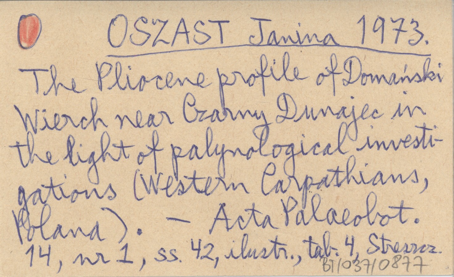 OSZAST Janina 1973 The Pliocene profile of Domański Wierch near Czarny Dunajec in the light of palynological investigations *Western Carpathians, Poland).