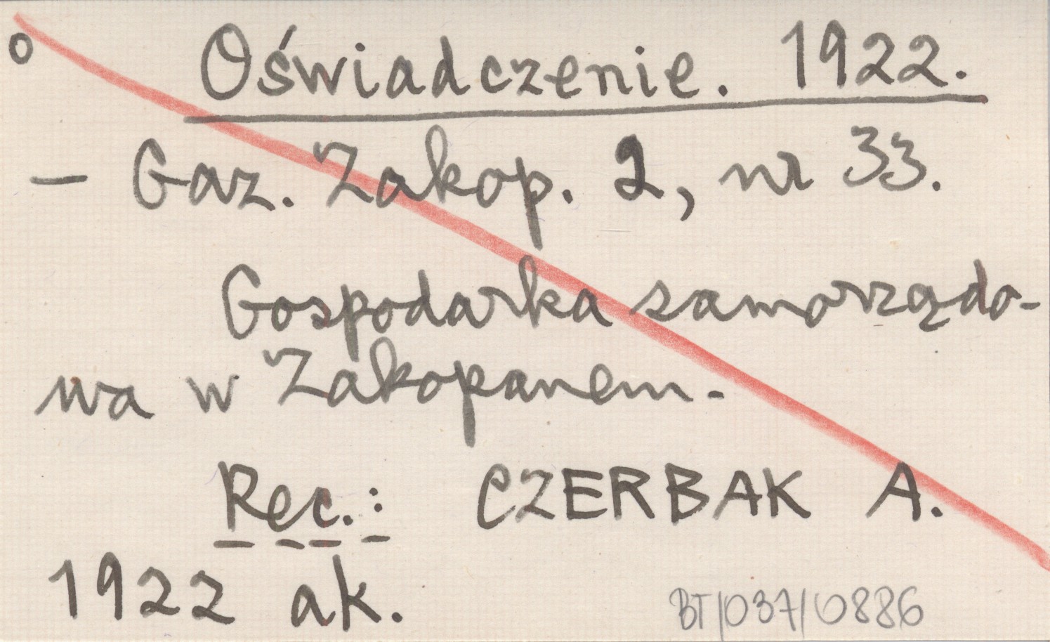 Gazeta Zakopiańska, 2, nr 33. Gospodarka samorządowa w Zakopanem. REC: CZERBAK A. 1922 ak.