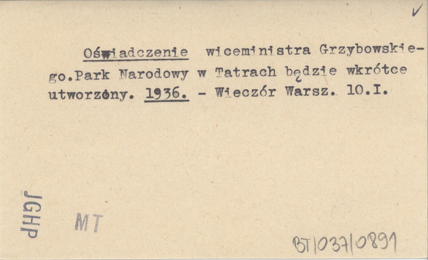 Oświadczenie wiceministra Grzybowskiego. Park Narodowy w Tatrach będzie wkrótce utworzony. 1936