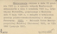 Oświadczenie rządowe z dnia 19 grudnia 1925 r. w sprawie uchwały Konferencji Ambasadorów z dnia 5 września 1924 r., dotyczącej Protokołu, podpisanego w Krakowie dnia 6 maja 1924 r. w związku z ustaleniem granicy polsko-czechosłowackiej w okręgu Jaworzyny. 1925