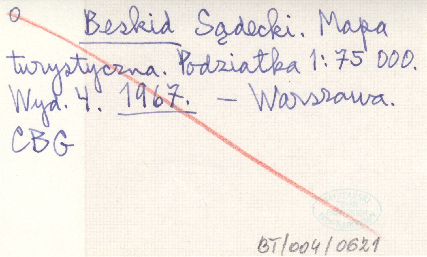 Sądecki. Mapa turystyczna. Podziałka 1:75 000.