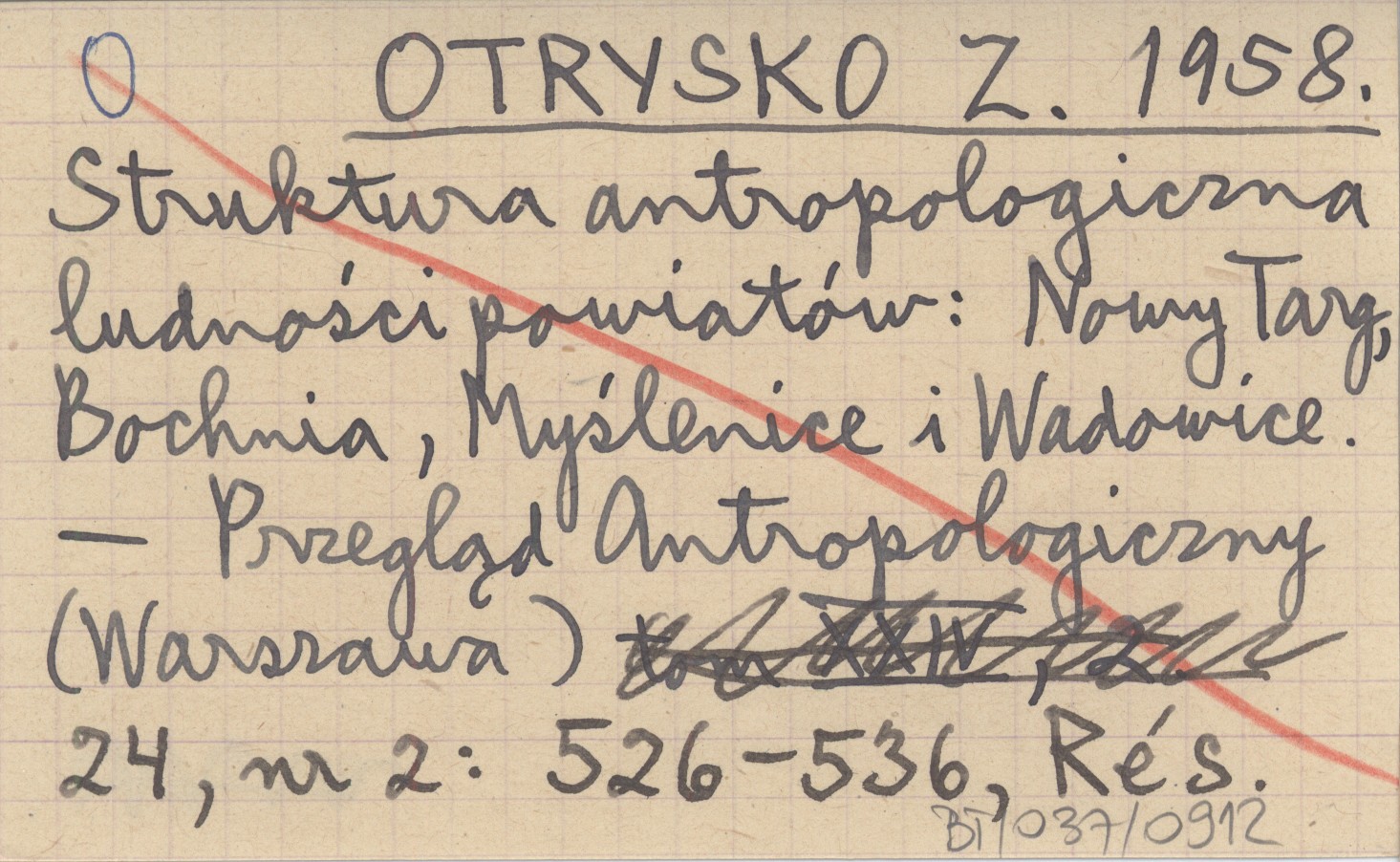 OTRYSKO Z. 1958 Struktura antropologiczna ludności powiatów: Nowy Targ, Bochnia, Myślenice i Wadowice.