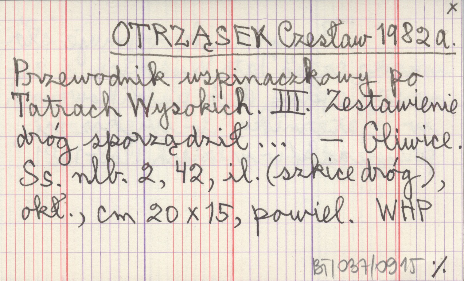 OTRZĄSEK Czesław 1982 a Przewodnik wspinaczkowy po Tatrach Wysokich. III. Zestawienie dróg sporządził...
