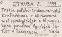 OTRUBA J. 1959... Tretia poľsko-československá konferencia o spracovaní meteorolockých a klimatických pomerov Vysokých Tatier v Zakopanom.