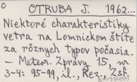 OTRUBA J. 1962... Niektoré charakteristiky vetra na Lomnickom štite za rôznych typov počasia.