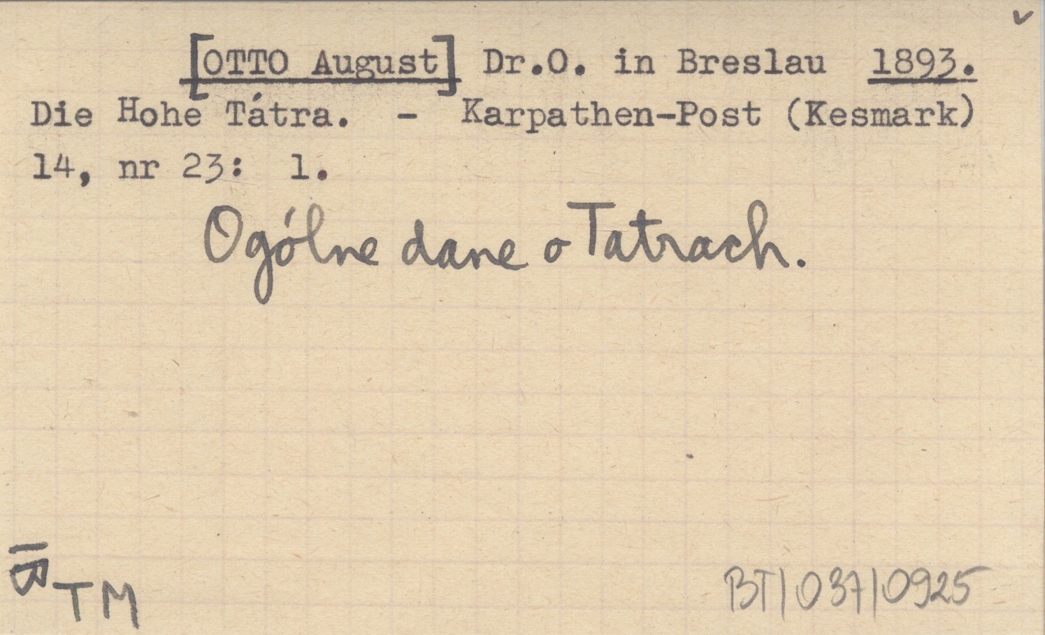 Dr.O. in Breslau [OTTO August] 1893 Die Hohe Tátra.