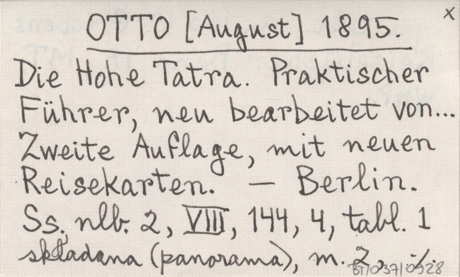 OTTO [August] 1895 Die Hohe Tatra. Praktischer Führer, neu bearbeitet von... Zweite Auflage, mit neuen Reisekarten.