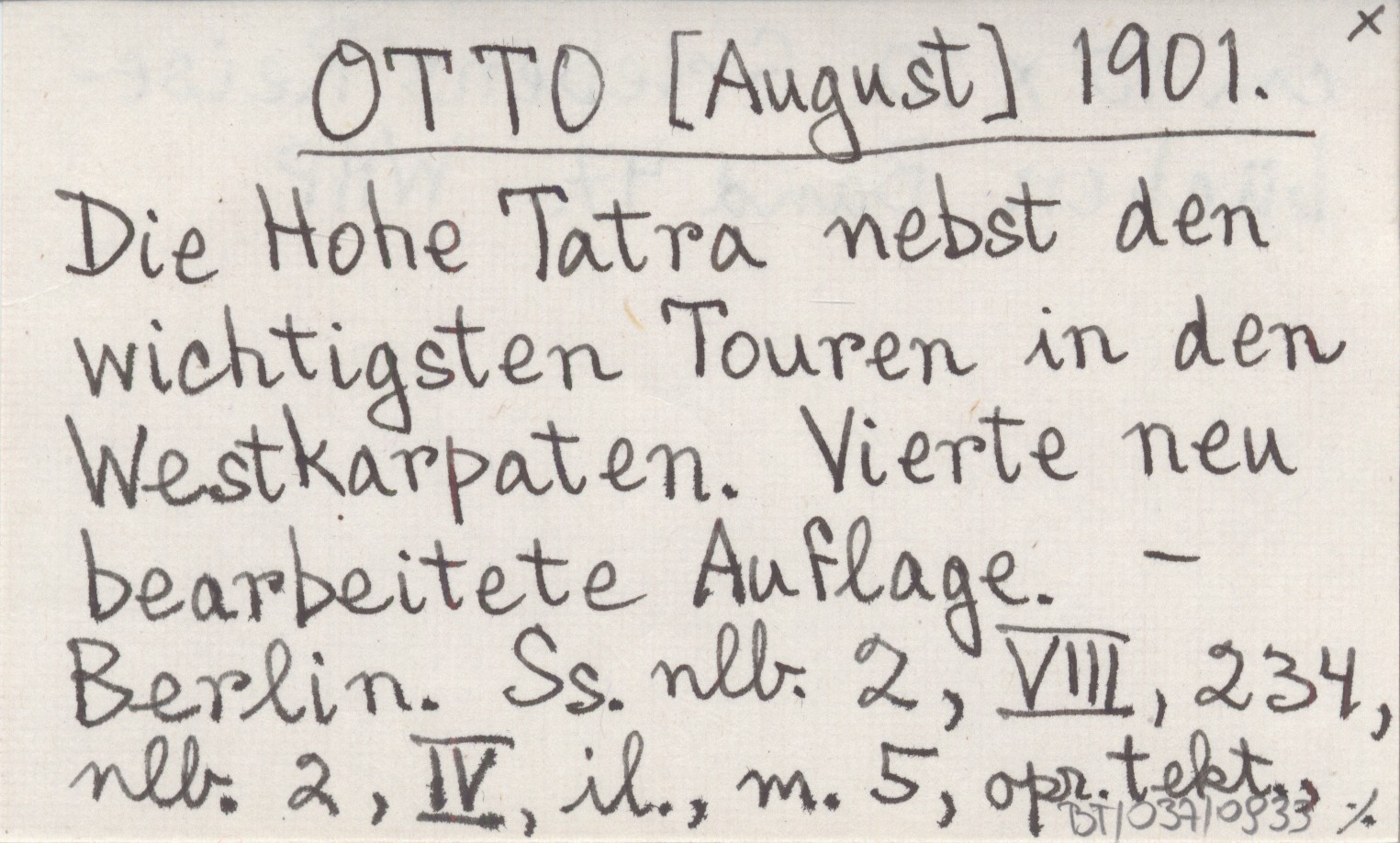 OTTO [August] 1901 Die Hohe Tatra nebst den wichtigsten Touren in den Westkarpaten. Vierte neu bearbeitete Auflage.