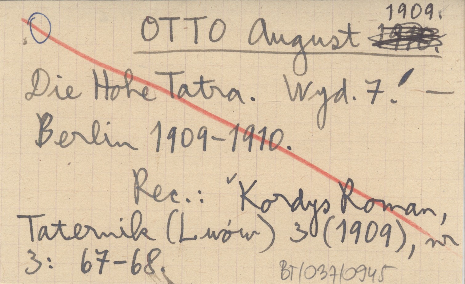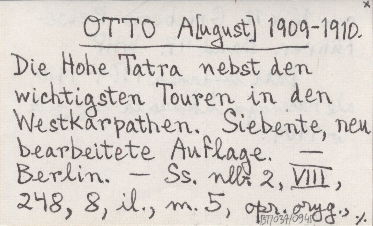 OTTO A[ugust] 1909-1910 Die Hohe Tatra nebst den wichtigsten Touren in den Westkarpathen. Siebente, neu bearbeitete Auflage.