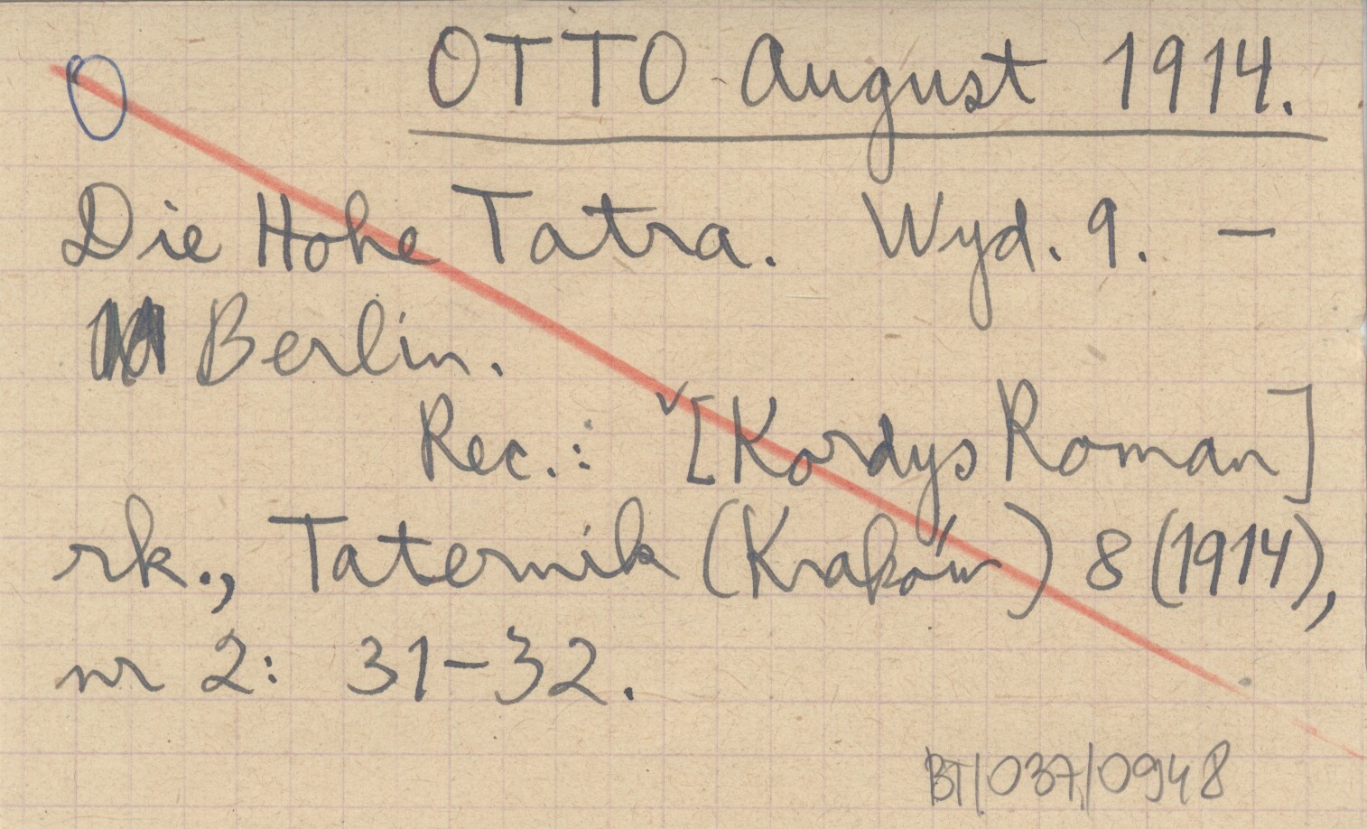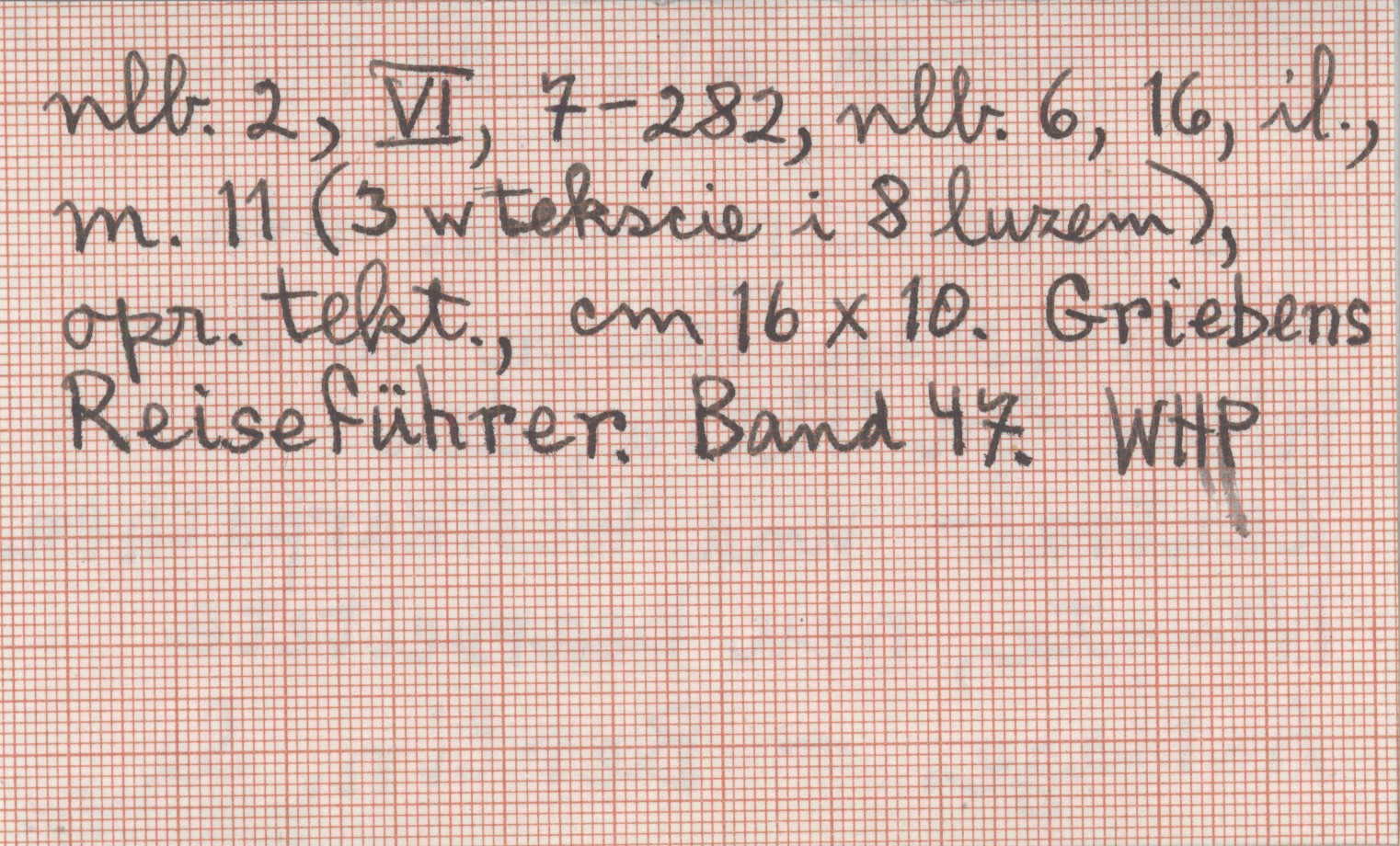 WYD: 9 Berlin (Griebens Reiseführer. ; 47) , [2], VI, 7-282, [6], 16 s., il., 11 m., opr. tekt., 16x10 cm. 3 mapy w tekście, 8 luzem. REC: [Kordy Roman] rk., Taternik (Kraków) 8 (1914), nr 2: 31-32.