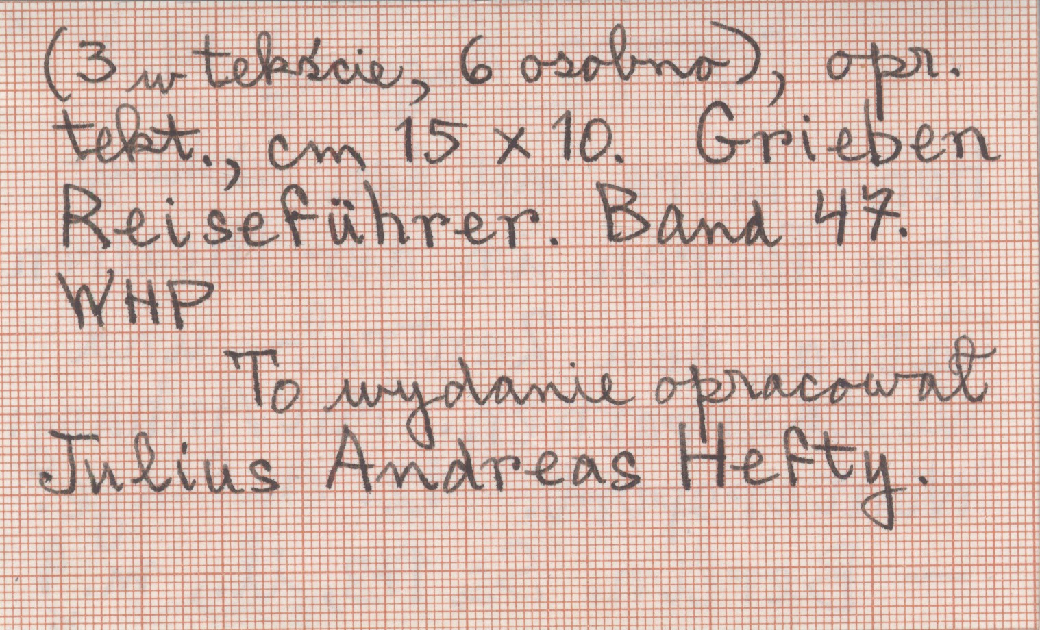 WYD: 12 Berlin (Grieben Reiseführer. ; 47) , 178 s., il., 9 m., opr. tekt., 15x10 cm. 3 mapy w tekście, 6 osobno. To wydanie opracował Julius Andreas Hefty.