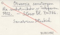 Otwarcie sanatoryum dla suchotników w Zakopanem. 1902