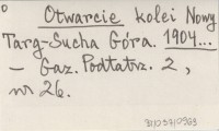 Otwarcie kolei Nowy Targ-Sucha Góra. 1904...