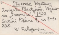 Otwarcie Wystawy Związku Plastyków. Wystawa "Zwornika". 1933