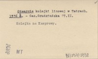 Otwarcie kolejki linowej w Tatrach. 1936 l