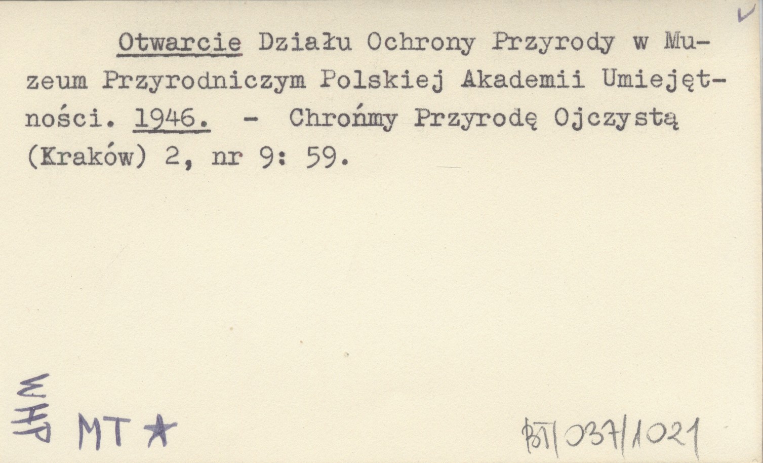 Otwarcie Działu Ochrony Przyrody w Muzeum Przyrodniczym Polskiej Akademii Umiejętności. 1946