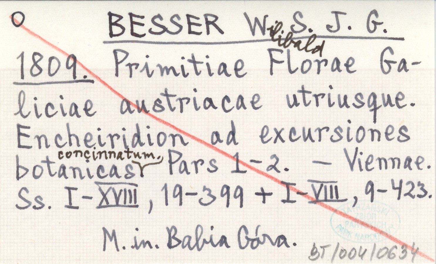 S.J.G. BESSER Wilibald 1809 Primitiae Florae Galiciae austriacae utriusque. Encheiridion ad excursiones botanicas concinnatum. Pars 1-2.