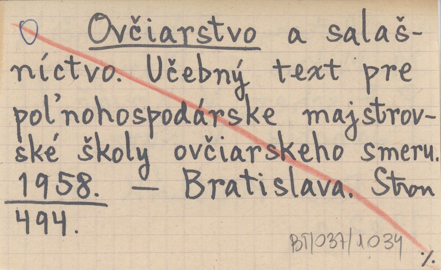 Ovčiarstvo a salaąníctvo. Učebný text pre poµnohospodárske majstrovské ąkoly ovčiarskeho smeru. 1958