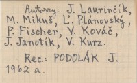 Bratislava , 494 s. Autorzy: J. Laurinčík, M. Mikuą, Ą. Plánovský, P. Fischer, V. Kováč, J. Janotík, V. Kurz. REC: PODOLÁK J. 1962 a.