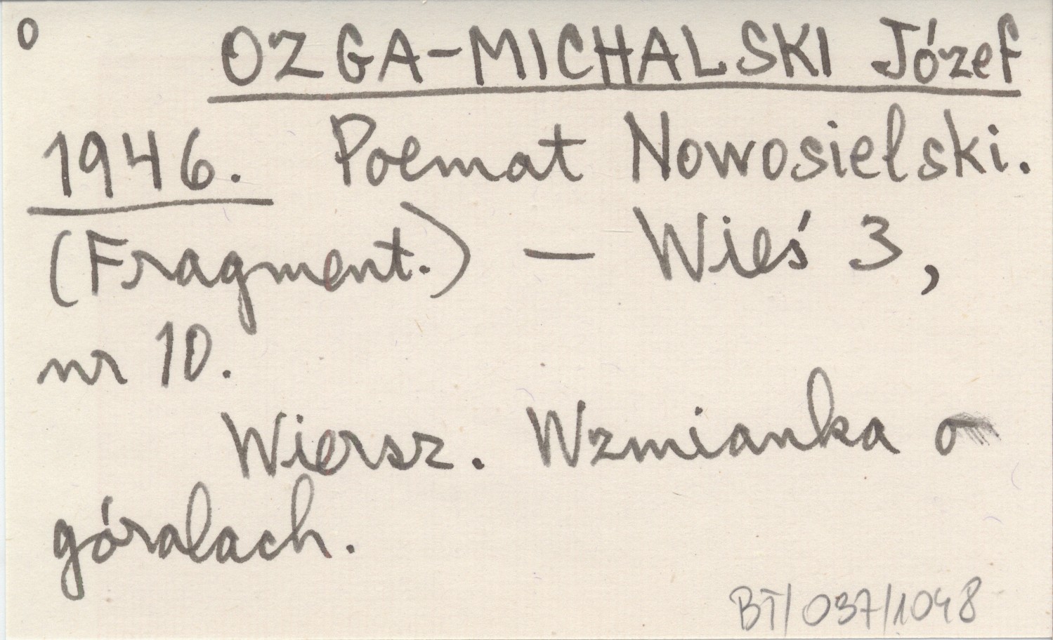 OZGA-MICHALSKI Józef 1946 Poemat Nowosielski. (Fragment).