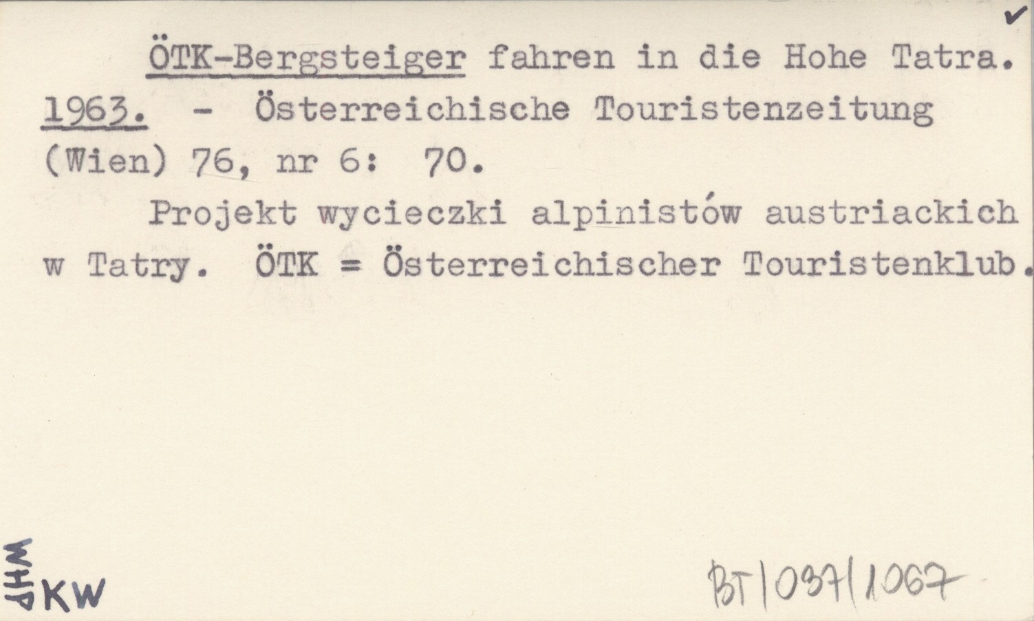 Österreichosche Touristenzeitung (Wien) , 76, nr 6: 70. Projekt wycieczki alpinistów austriackich w Tatry. ÖTK = Österreichischer Touristenklub.