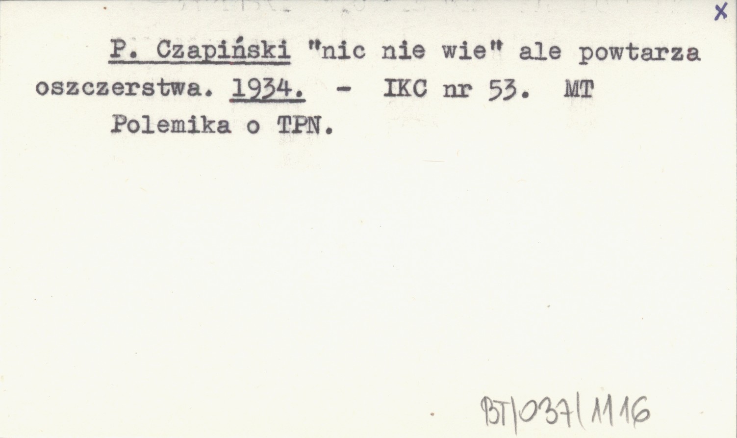 P. Czapiński "nic nie wie" ale powtarza oszczerstwa. 1934